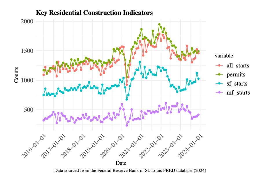 Key residential building indicators share a similar story to the growth in the construction labor force.