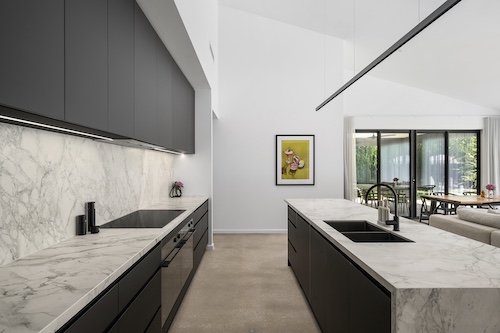 “Kitchens and bathrooms are great places to add a touch of luxury without blowing the budget,” said Jess. “For example, floor-to-ceiling tiles in the bathroom can totally transform the space, creating a cohesive visual look and making the bathrooms look larger. In the kitchen, stone benchtops give that timeless, naturally luxurious feel. They’re durable and a smart investment if you’re going for a high-end look that won’t date.”