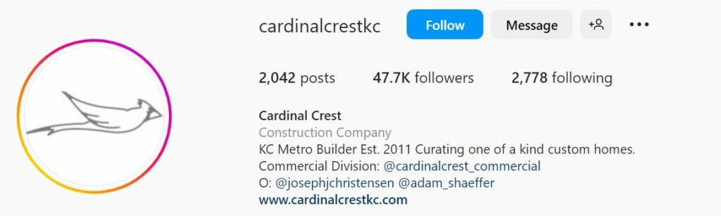 This custom home builder delivers the whole package with in-house architectural and interior design services. Cardinal Crest Homes is setting the standard for construction social media with their quality-built homes that focus on design and function. They build homes in and around the Kansas City Metro Area with three process options: semi-custom, full custom or basement/remodel.