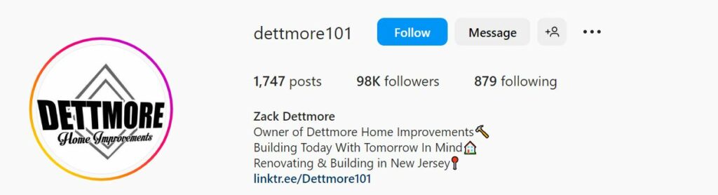 Zack Dettmore is owner of Dettmore Home Improvements, a New Jersey team specializing in bathroom and kitchen renovations. Dettmore is a lifelong carpenter and renovator who prides himself on working efficiently. Follow along to learn his helpful tips and tricks posted right to his Instagram page.