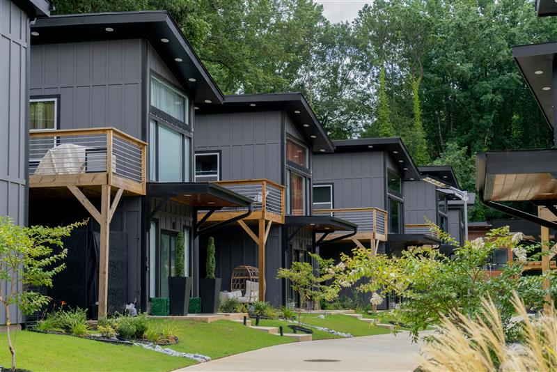 With homes ranging from 400 to 640 square feet, the community embraces minimalism without sacrificing comfort. Each home integrates smart home technology, allowing residents to control lighting, temperature and security with ease – all while reducing energy consumption.