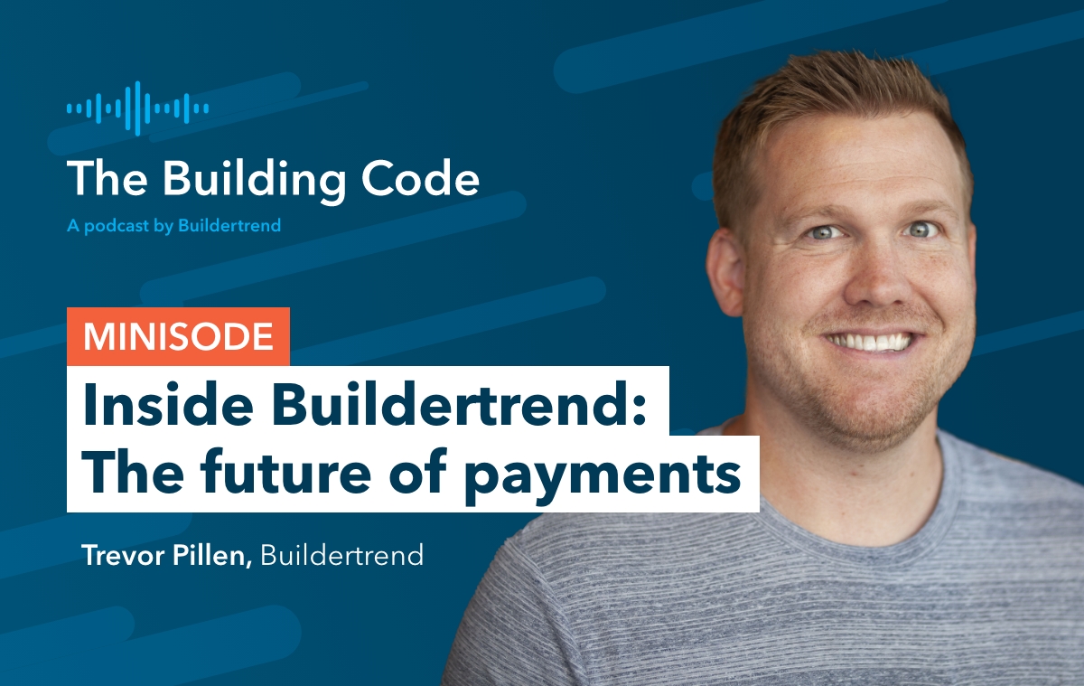 On today’s episode of “Inside Buildertrend,” Trevor Pillen, payment operations specialist, is chatting with Zach and Charley about the significance of online payments. Tune in to hear more about how our Financial Services team is working to change the way the construction industry gets paid. Learn more about why the future of getting paid is digital.